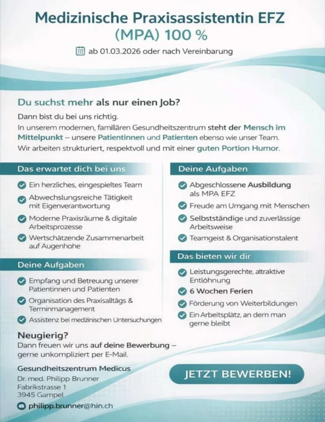 Wir möchten Ihnen aber auch Ihr Medicus-Team besser vorstellen. Hier finden Sie viele Eindrücke unserer vielseitigen Praxisausflügen und Weiterbildungen. Viel Spass!